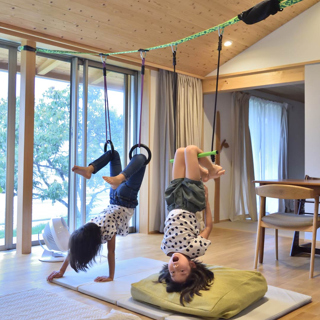 子どもが小さいうちはハンモックの中で読書をしながらゆっくり過ごす、なんてことはなかなかしないと思いますが、ハンモックをアスレチック代わりに使うこともできます。